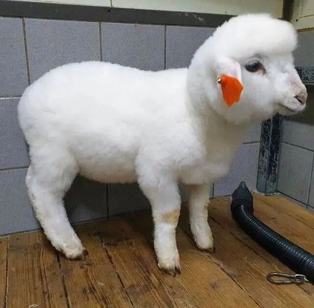 等小羊洗完澡,美容师把它的绒毛吹干,一个全新的小可爱就此诞生,简直像是换了一只羊!