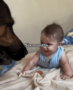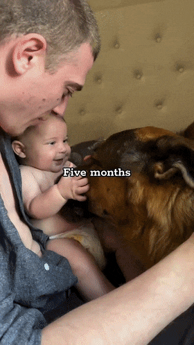 第九个月,收到娃抱抱的狗子一脸欣慰:娃长大啦!