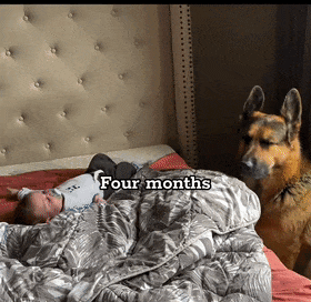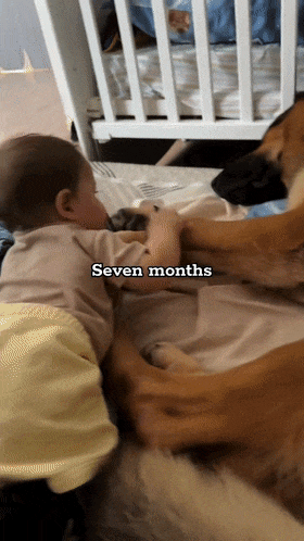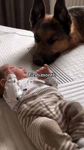来感受下从小宝宝出生到11个月大期间,大德牧的带娃日常;