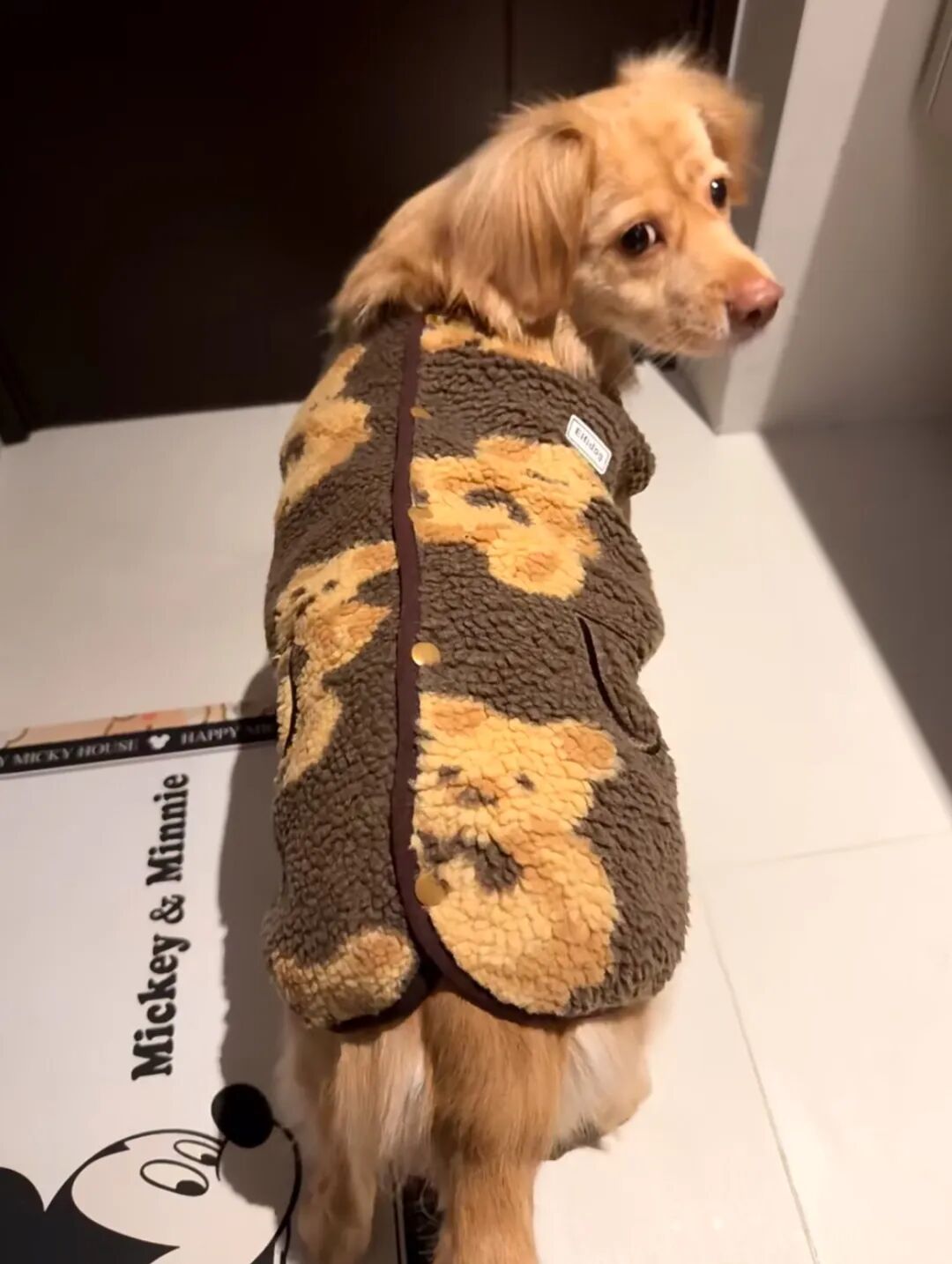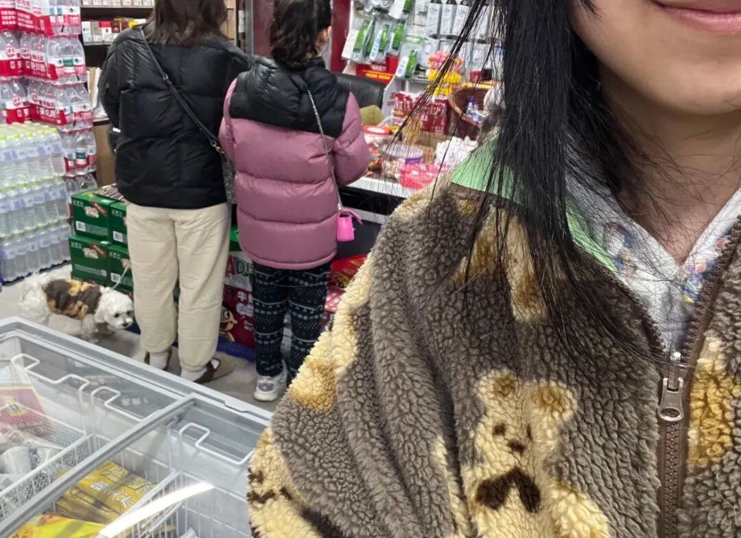 她就穿上了心爱的小熊摇粒绒外套