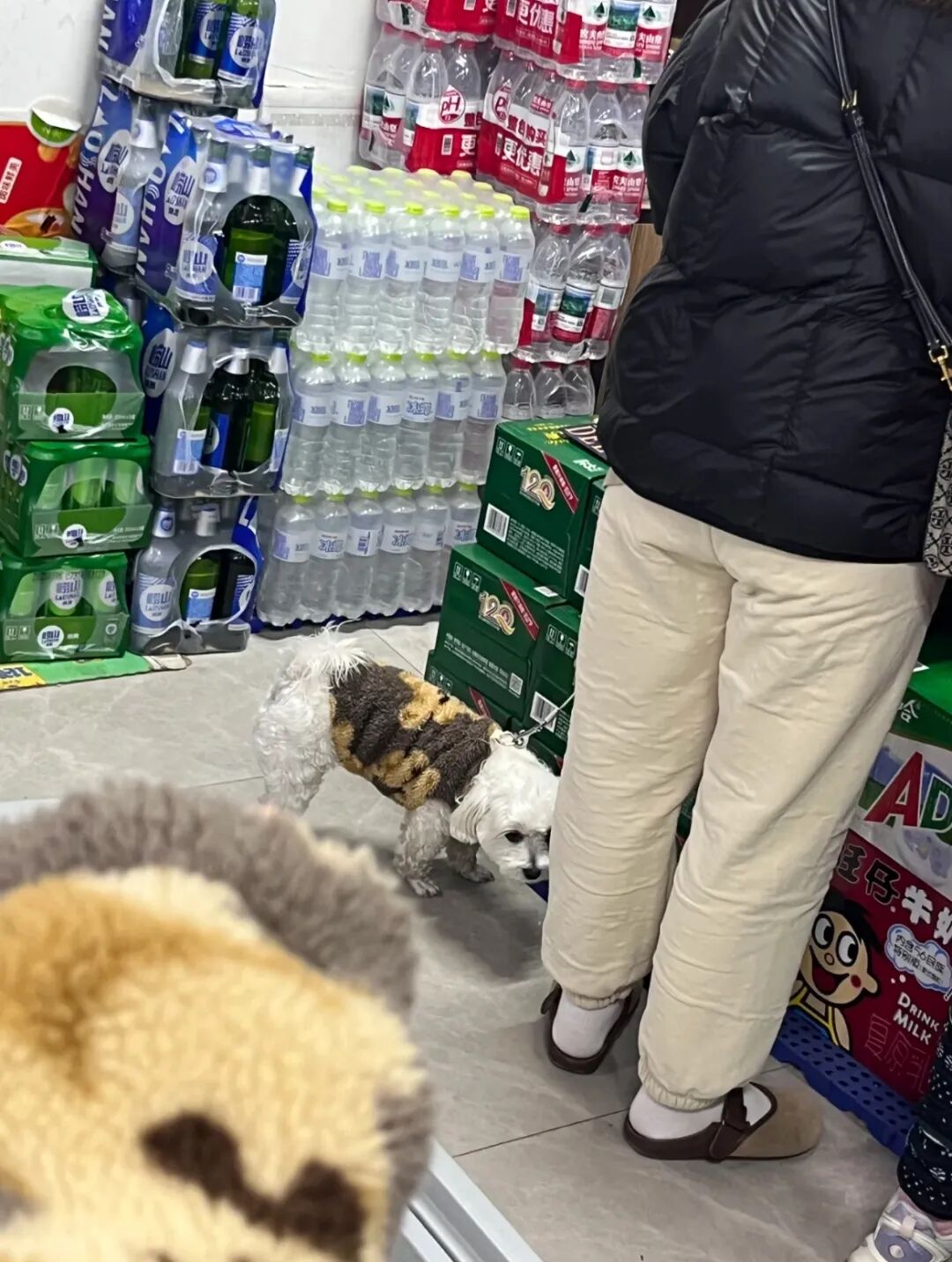 一位网友逛超市时看见一只小狗