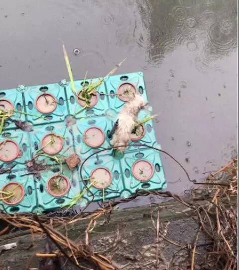 大年初四早晨,天空阴雨绵绵,湿冷入骨。在马桥经编园区的一条小河里,一只小狗站在泡沫板上摇摇欲坠,在凄风苦雨中瑟瑟发抖,不时发出阵阵呜咽声。
